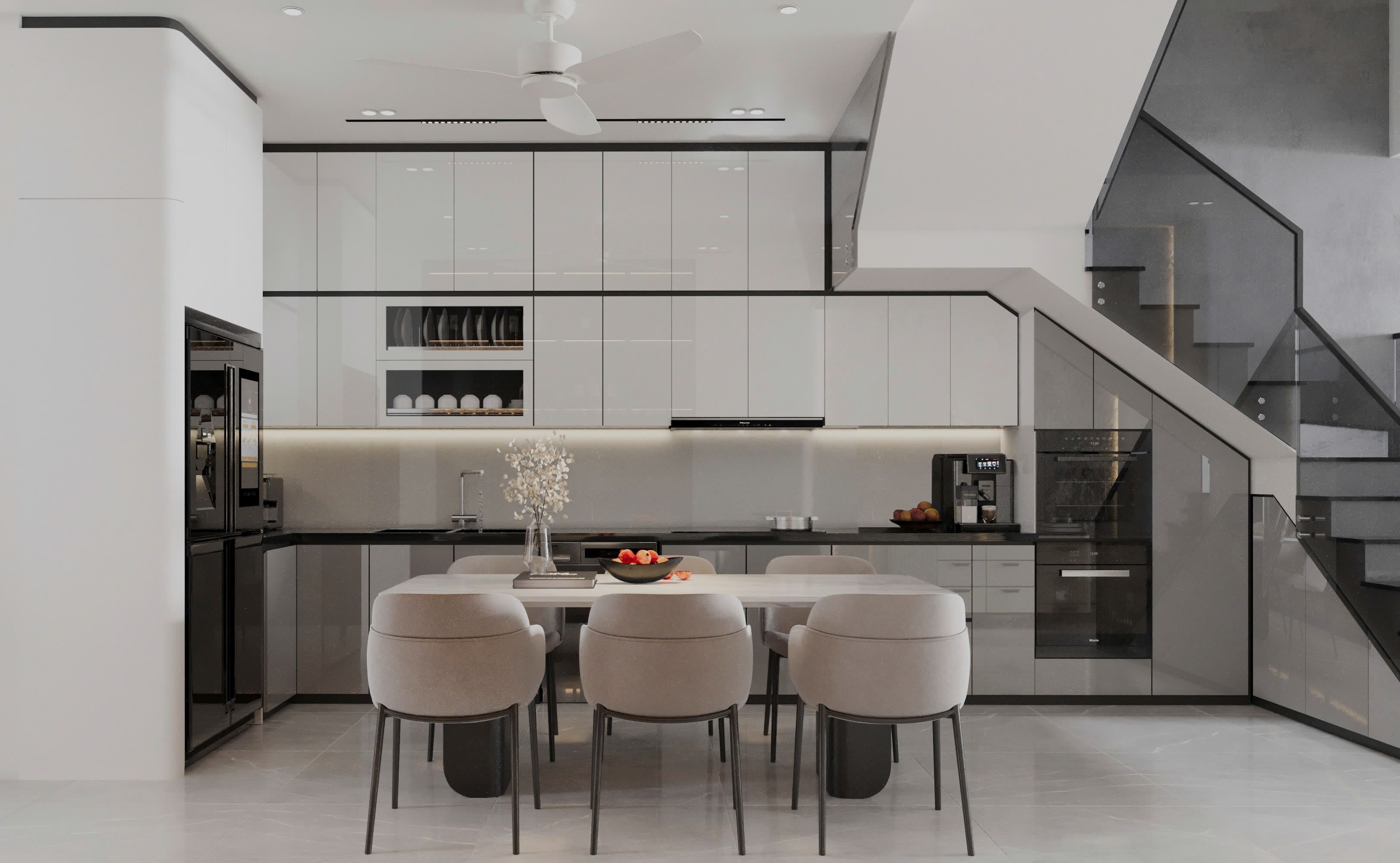 Thiết kế nội thất phòng khách, bếp, phòng ngủ theo phong cách hiện đại, tối giản và sang trọng.